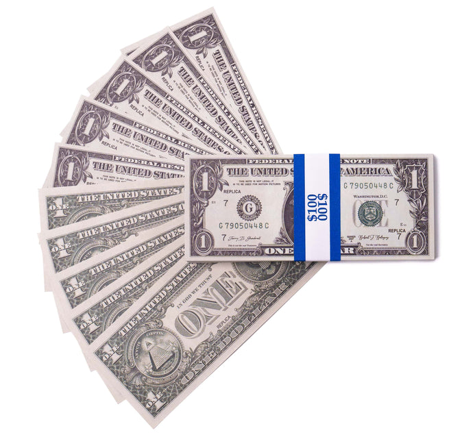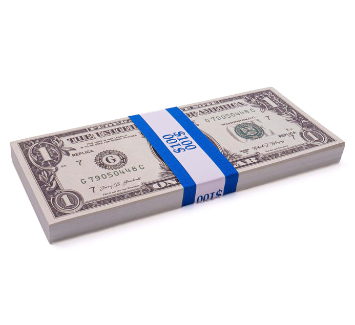 Each stack includes 100 bills with currency strap.- Double-Sided Full Print