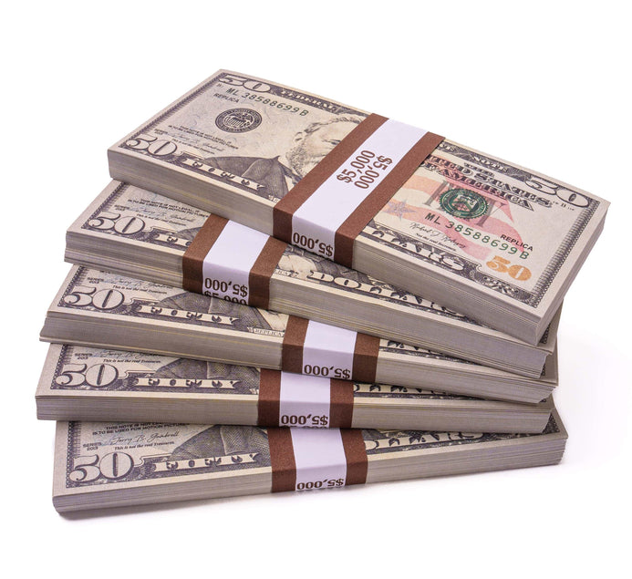 $25,000 Prop Money (5 Stacks of $50 Bills, New Series)