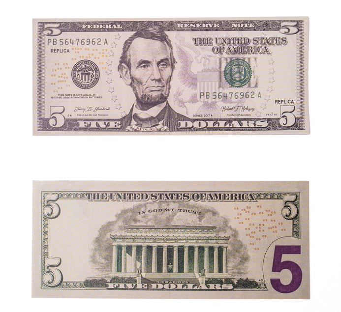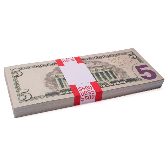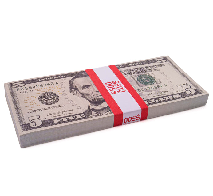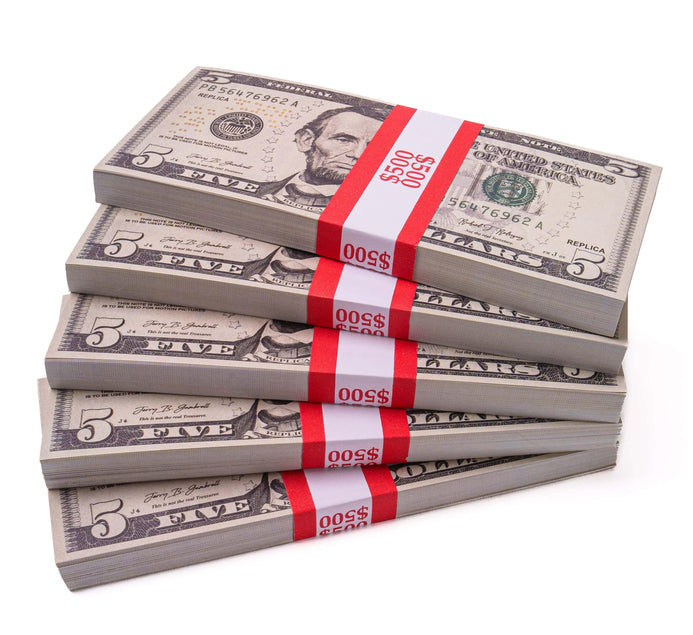 $2,500 Prop Money (5 Stacks of $5 Bills, New Series)